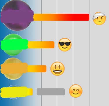 Voici la comparaison entre nos activités et celles de nos compétiteurs. Dix joules représentent la possibilité de gros ecchymoses et de saignements. Nos activités offrent la même adrénaline et distance, mais moins de pincement.